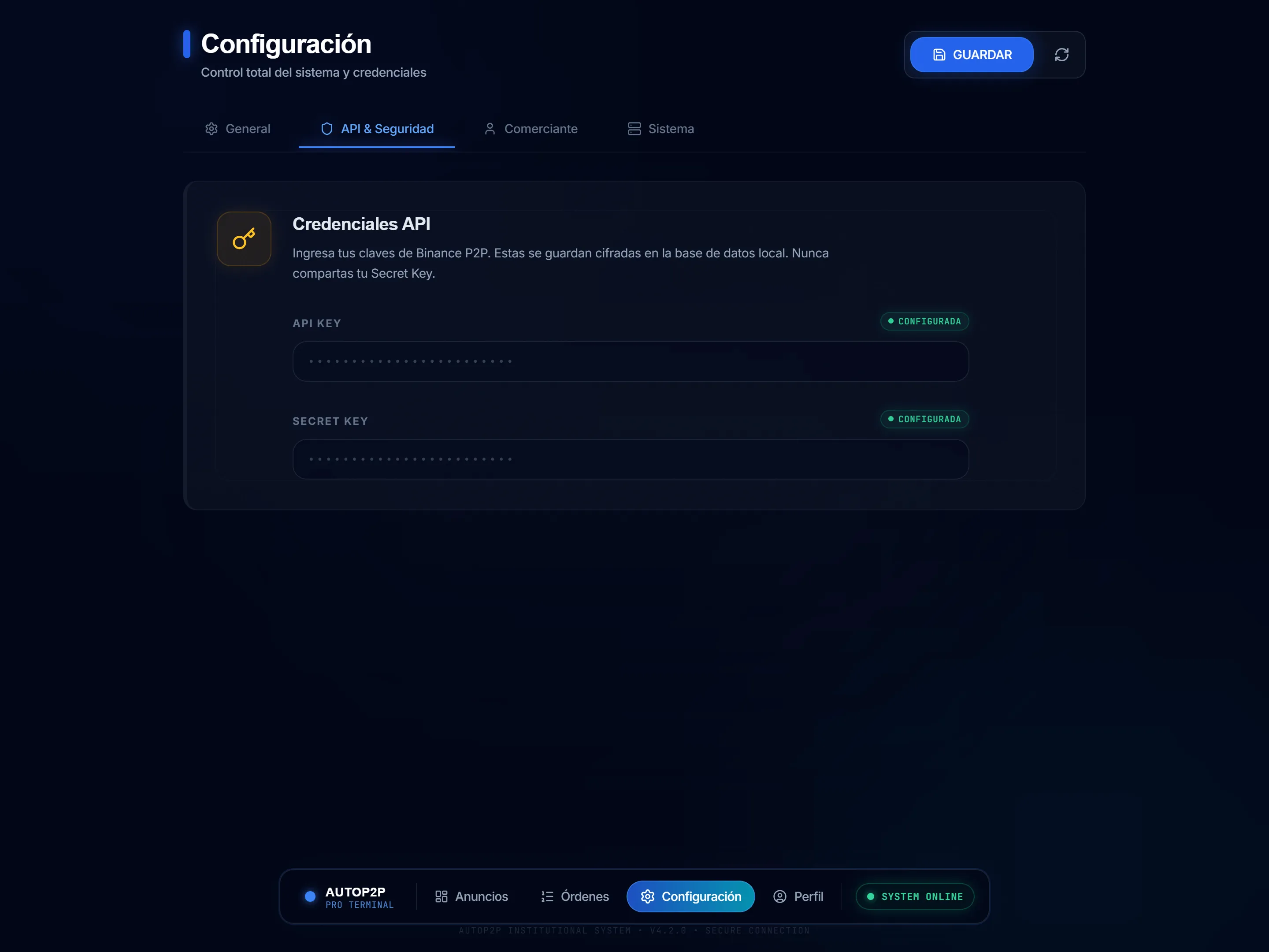¡Buenas noticias! Una vez que guardes tus credenciales, Autop2p detectará automáticamente todos tus anuncios activos en Binance. No tenés que agregar ninguno manualmente.