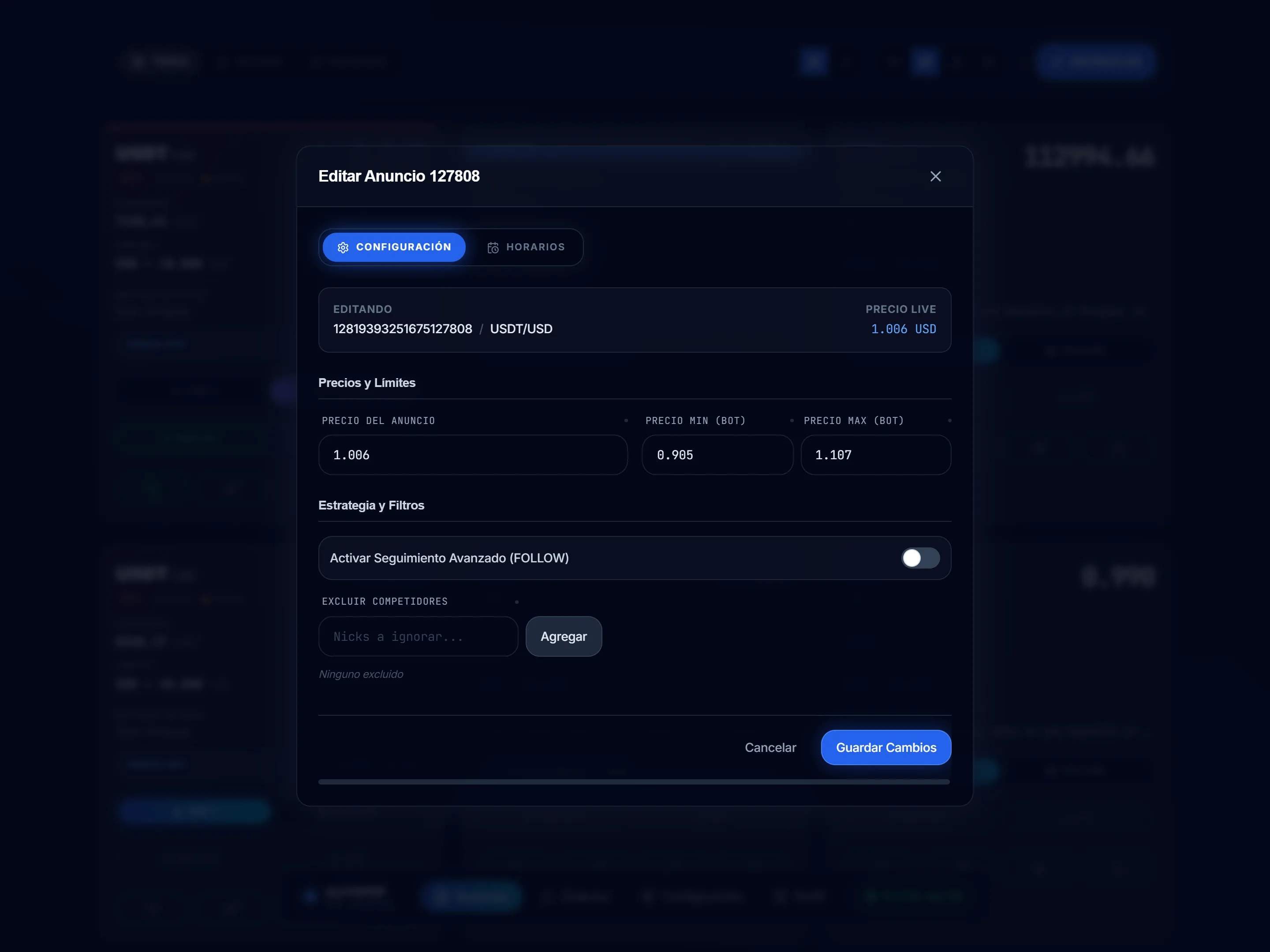 - Precio Mínimo: El bot no bajará tu anuncio de este valor.